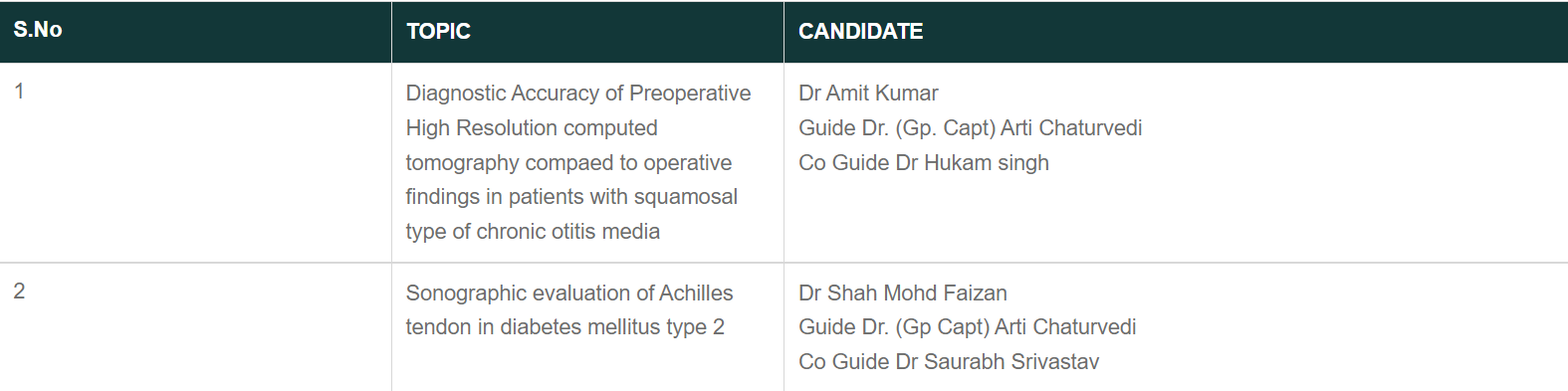 | Monday | Dr Nitin | B Scan images of orbit | Seminar | Dr Arti Chaturvedi |
